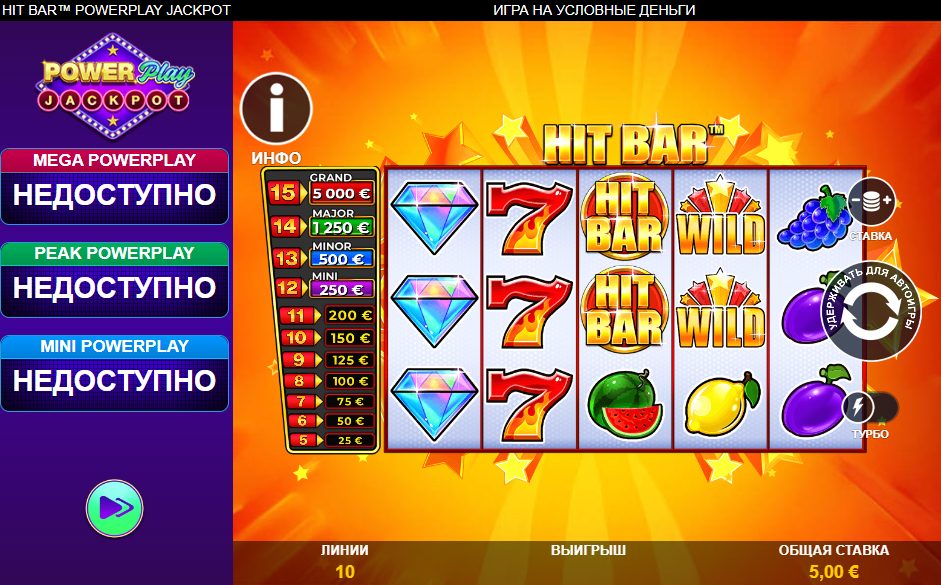 - Hit Bar PowerPlay Jackpot is a classic slot game with 3 reels and various paylines.